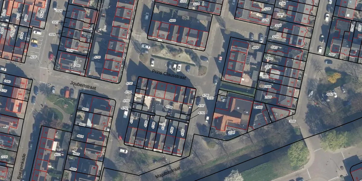 Het perceel waarop Prins Clausstraat 10 staat heeft een oppervlakte van 394 m². Dit is een groot perceel. De perceeloppervlakte wordt geregistreerd door het Kadaster. Gedetailleerde informatie over de maten van dit perceel kunt u vinden in het rapport Kadastrale kaart met maatvoering van Prins Clausstraat 10.