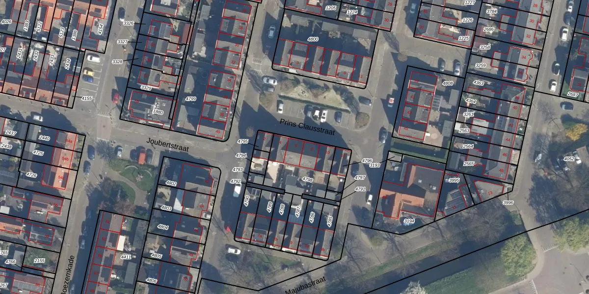 Het perceel waarop Prins Clausstraat 6 staat heeft een oppervlakte van 394 m². Dit is een groot perceel. De perceeloppervlakte wordt geregistreerd door het Kadaster. Gedetailleerde informatie over de maten van dit perceel kunt u vinden in het rapport Kadastrale kaart met maatvoering van Prins Clausstraat 6.