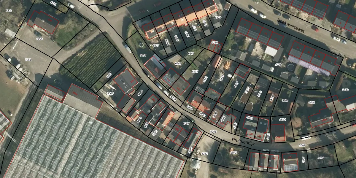 Het perceel waarop Pruimendijk 121 staat heeft een oppervlakte van 291 m². Dit is een middelgroot perceel. De perceeloppervlakte wordt geregistreerd door het Kadaster. Gedetailleerde informatie over de maten van dit perceel kunt u vinden in het rapport Kadastrale kaart met maatvoering van Pruimendijk 121.
