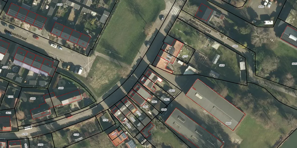 Gebruik de zoekbalk of klik op een perceel voor informatie over de adressen binnen dit perceel.