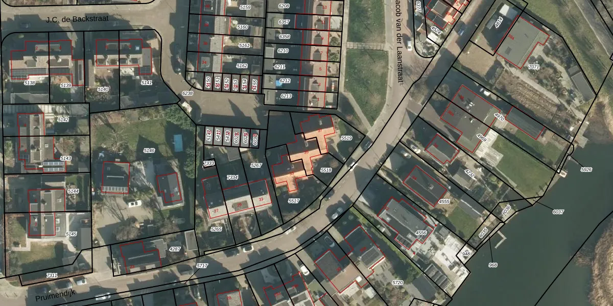 Pruimendijk 35 is gelegen op kadastraal perceel RDK01C5518. Deze kadastrale aanduiding is uniek en wordt gebruikt door het Kadaster om eigendomsrechten en andere zakelijke rechten vast te leggen. Het perceel maakt onderdeel uit van de kadastrale gemeente Ridderkerk.