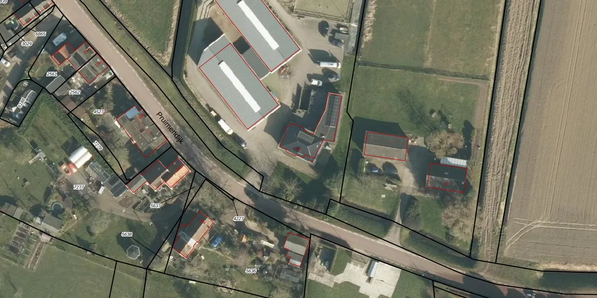 Het perceel waarop Pruimendijk 85 staat heeft een oppervlakte van 9240 m². Dit is een zeer groot perceel. De perceeloppervlakte wordt geregistreerd door het Kadaster. Gedetailleerde informatie over de maten van dit perceel kunt u vinden in het rapport Kadastrale kaart met maatvoering van Pruimendijk 85.