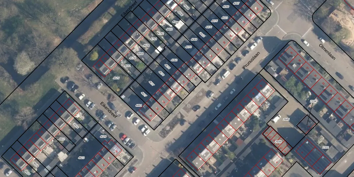 Gebruik de zoekbalk of klik op een perceel voor informatie over de adressen binnen dit perceel.