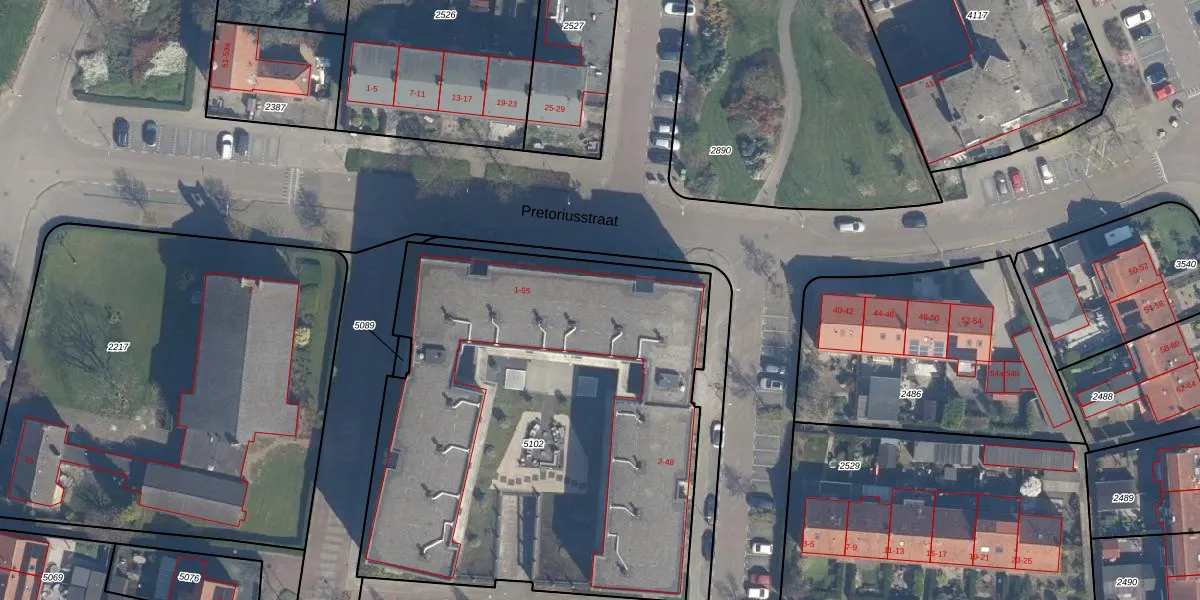 De informatie over dit adres is afkomstig uit officiële overheidsregistraties, voornamelijk de Basisregistratie Adressen en Gebouwen (BAG) en de Basisregistratie Kadaster (BRK). Deze gegevens worden beheerd door respectievelijk gemeenten en het Kadaster, en worden regelmatig bijgewerkt. Energielabelgegevens komen uit de database van de Rijksdienst voor Ondernemend Nederland (RVO).