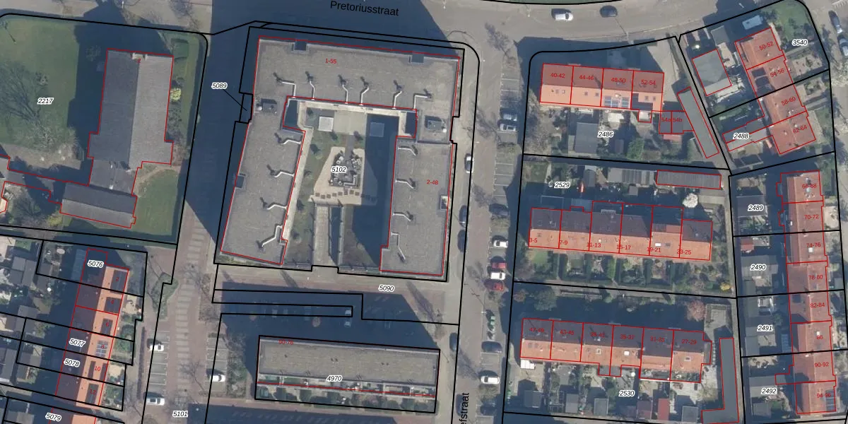 Het perceel waarop Retiefstraat 40 staat heeft een oppervlakte van 2910 m². Dit is een zeer groot perceel. De perceeloppervlakte wordt geregistreerd door het Kadaster. Gedetailleerde informatie over de maten van dit perceel kunt u vinden in het rapport Kadastrale kaart met maatvoering van Retiefstraat 40.