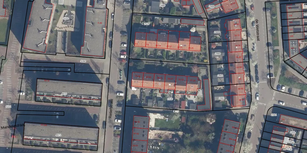 Retiefstraat 43 is gelegen op kadastraal perceel RDK01G2530. Deze kadastrale aanduiding is uniek en wordt gebruikt door het Kadaster om eigendomsrechten en andere zakelijke rechten vast te leggen. Het perceel maakt onderdeel uit van de kadastrale gemeente Ridderkerk.