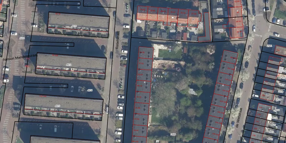 Retiefstraat 65 is gelegen op kadastraal perceel RDK01G2499. Deze kadastrale aanduiding is uniek en wordt gebruikt door het Kadaster om eigendomsrechten en andere zakelijke rechten vast te leggen. Het perceel maakt onderdeel uit van de kadastrale gemeente Ridderkerk.