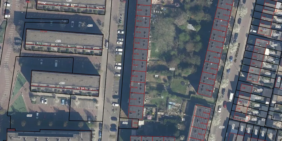 Het perceel waarop Retiefstraat 97 staat heeft een oppervlakte van 9023 m². Dit is een zeer groot perceel. De perceeloppervlakte wordt geregistreerd door het Kadaster. Gedetailleerde informatie over de maten van dit perceel kunt u vinden in het rapport Kadastrale kaart met maatvoering van Retiefstraat 97.