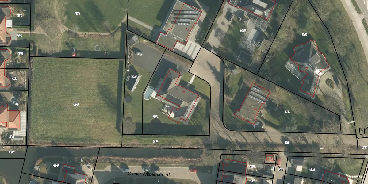 Het adres is gelegen op perceel 752 in de sectie E en de kadastrale gemeente Ridderkerk. De kadastrale aanduiding is aldus RDK01-E-752. Het perceel is 1365 m² groot. Dat is kleiner dan de gemiddelde perceeloppervlakte in Ridderkerk, dat op 1571,46 m² ligt. Het grootste perceel in de kadastrale gemeente is 61,6 ha. Het kleinste perceel heeft een oppervlakte van 0 m². Op het perceel bevinden zich geen andere adressen. De huidige grenzen van het perceel zijn digitaal in de Basisregistratie Kadaster (BRK) geregistreerd op 22-09-2006.