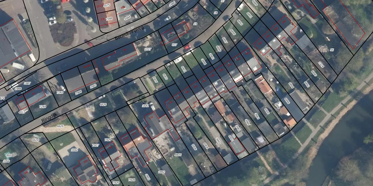 Het perceel waarop Ringdijk 180 staat heeft een oppervlakte van 385 m². Dit is een groot perceel. De perceeloppervlakte wordt geregistreerd door het Kadaster. Gedetailleerde informatie over de maten van dit perceel kunt u vinden in het rapport Kadastrale kaart met maatvoering van Ringdijk 180.