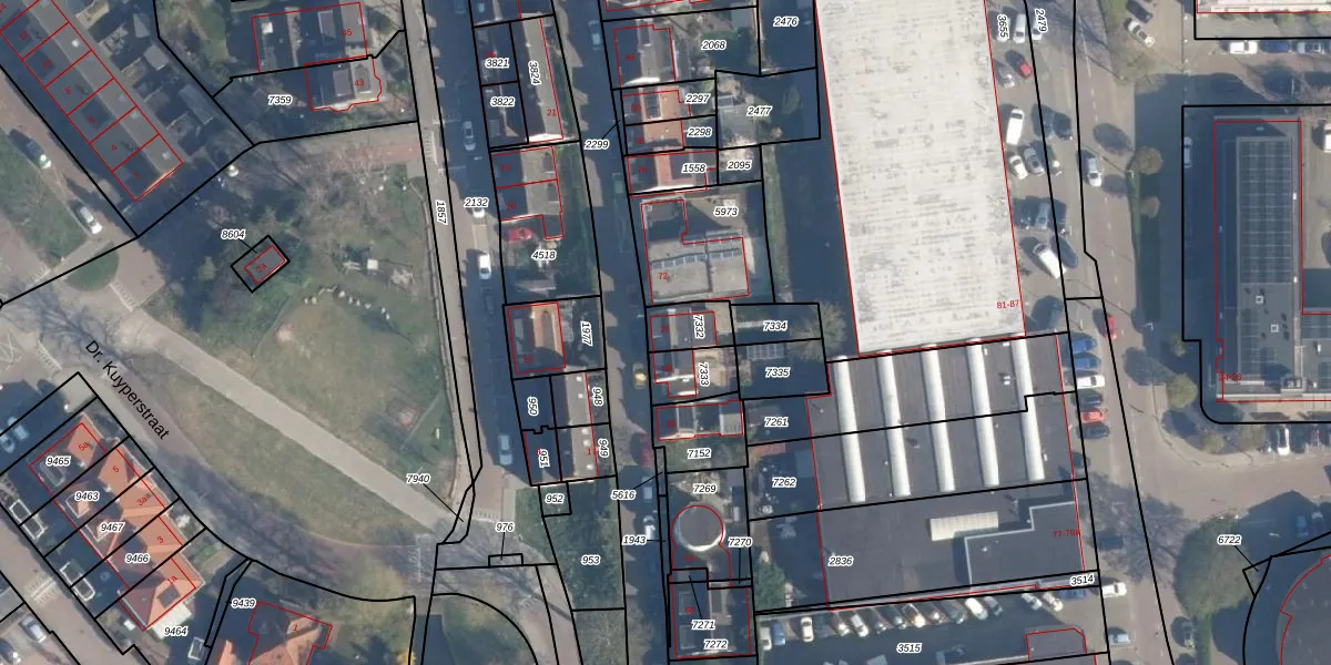 Het adres is gelegen op perceel 7332 in de sectie H en de kadastrale gemeente Ridderkerk. De kadastrale aanduiding is aldus RDK01-H-7332. De gemiddelde perceelgrootte in Ridderkerk is 1571,46 m². Dit perceel is kleiner: de perceeloppervlakte bedraagt 90 m². De grootste perceeloppervlakte in de kadastrale gemeente is 61,6 ha. De kleinste oppervlakte bedraagt 0 m². Er zijn geen andere adressen aanwezig op het perceel. In de Basisregistratie Kadaster (BRK) werden de grenzen van het perceel geregistreerd op 17-11-2006.