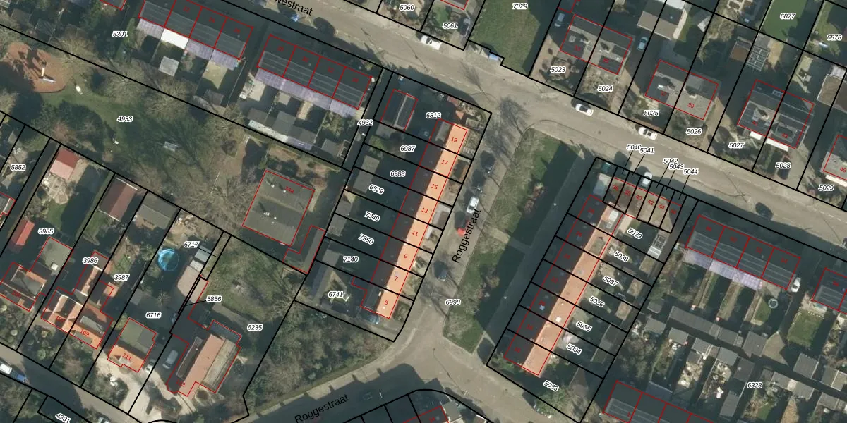 Roggestraat 13 is gelegen op kadastraal perceel RDK01C6529. Deze kadastrale aanduiding is uniek en wordt gebruikt door het Kadaster om eigendomsrechten en andere zakelijke rechten vast te leggen. Het perceel maakt onderdeel uit van de kadastrale gemeente Ridderkerk.