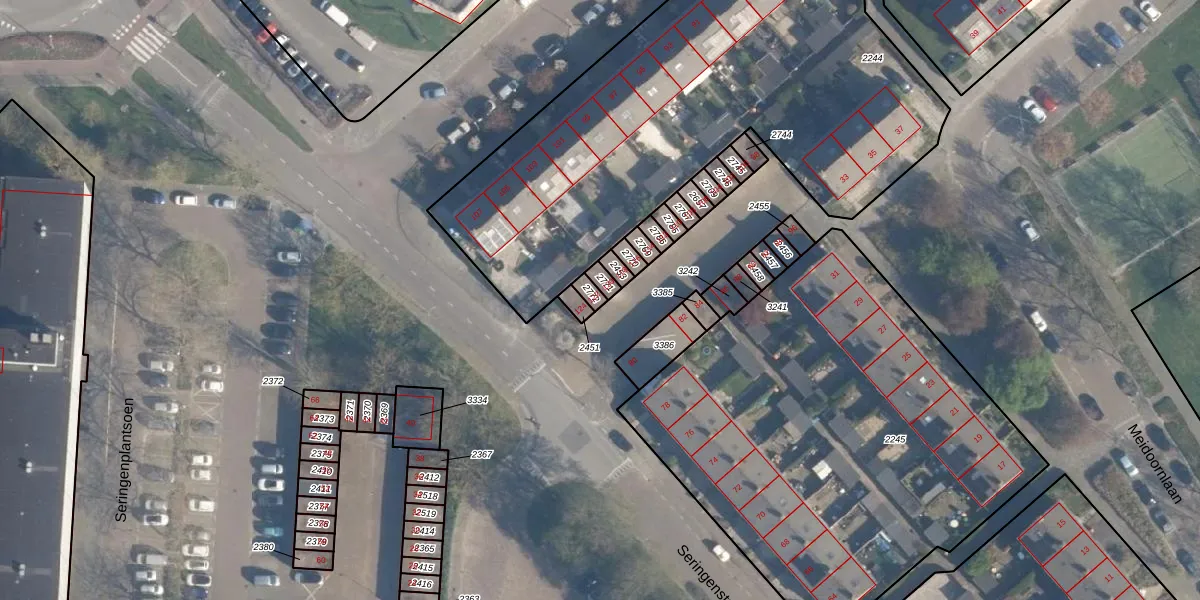 Gebruik de zoekbalk of klik op een perceel voor informatie over de adressen binnen dit perceel.