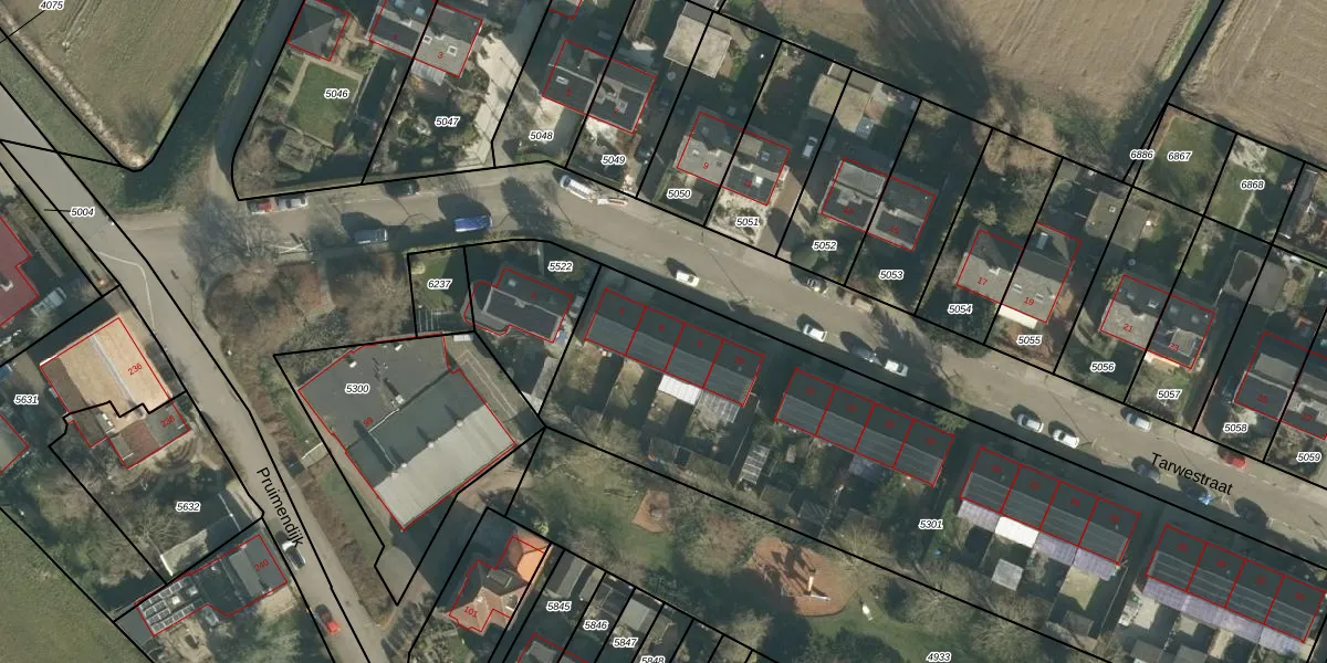 Het perceel waarop Tarwestraat 6 staat heeft een oppervlakte van 3133 m². Dit is een zeer groot perceel. De perceeloppervlakte wordt geregistreerd door het Kadaster. Gedetailleerde informatie over de maten van dit perceel kunt u vinden in het rapport Kadastrale kaart met maatvoering van Tarwestraat 6.