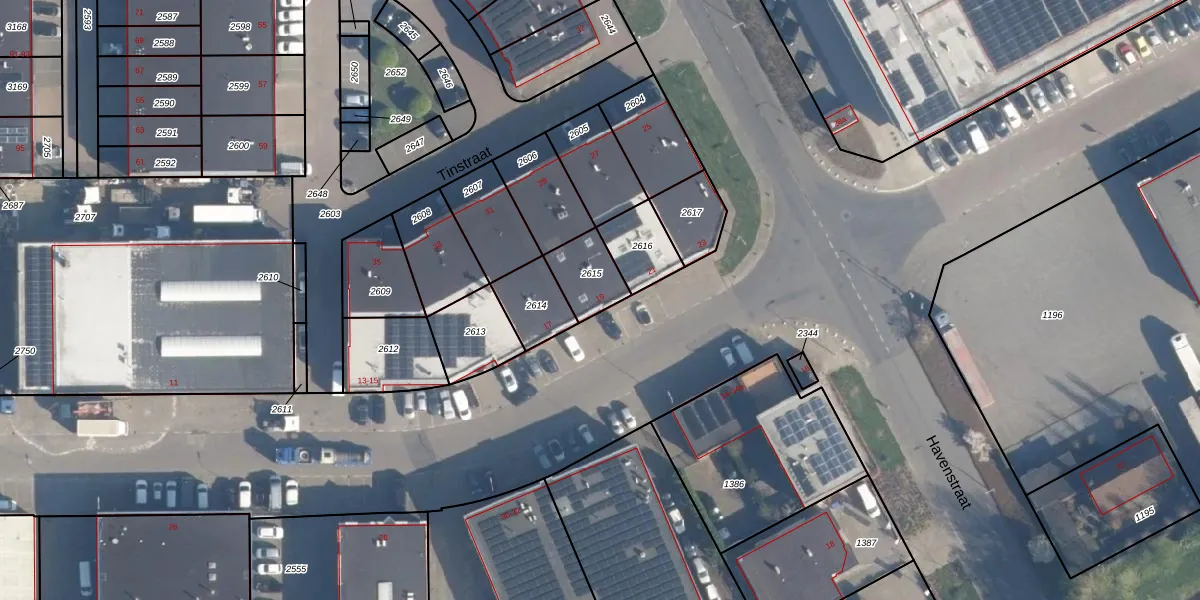 Tinstraat 19 is gelegen op kadastraal perceel RDK01B2615. Deze kadastrale aanduiding is uniek en wordt gebruikt door het Kadaster om eigendomsrechten en andere zakelijke rechten vast te leggen. Het perceel maakt onderdeel uit van de kadastrale gemeente Ridderkerk.