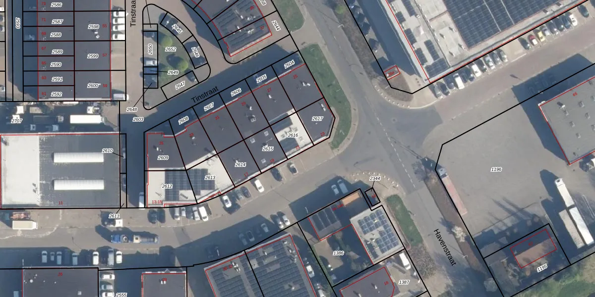 Tinstraat 21 is gelegen op kadastraal perceel RDK01B2616. Deze kadastrale aanduiding is uniek en wordt gebruikt door het Kadaster om eigendomsrechten en andere zakelijke rechten vast te leggen. Het perceel maakt onderdeel uit van de kadastrale gemeente Ridderkerk.