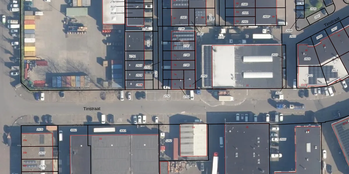 Tinstraat 5 is gelegen op kadastraal perceel RDK01B2751. Deze kadastrale aanduiding is uniek en wordt gebruikt door het Kadaster om eigendomsrechten en andere zakelijke rechten vast te leggen. Het perceel maakt onderdeel uit van de kadastrale gemeente Ridderkerk.