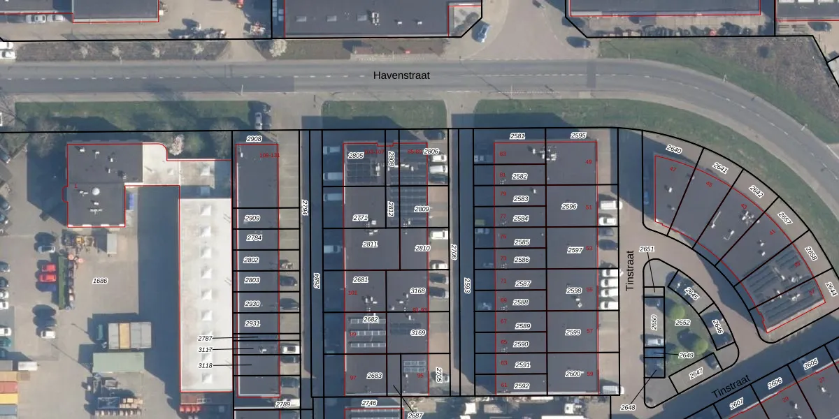 Gebruik de zoekbalk of klik op een perceel voor informatie over de adressen binnen dit perceel.
