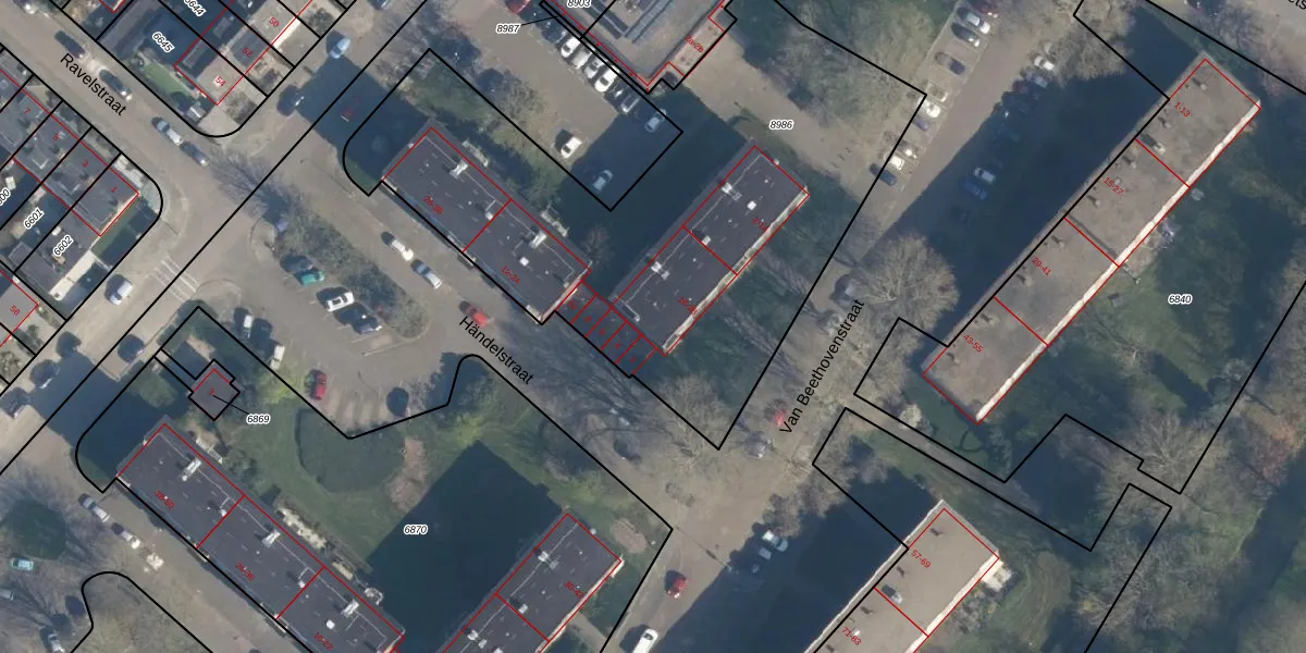 Het perceel waarop Van Beethovenstraat 24 staat heeft een oppervlakte van 2768 m². Dit is een zeer groot perceel. De perceeloppervlakte wordt geregistreerd door het Kadaster. Gedetailleerde informatie over de maten van dit perceel kunt u vinden in het rapport Kadastrale kaart met maatvoering van Van Beethovenstraat 24.
