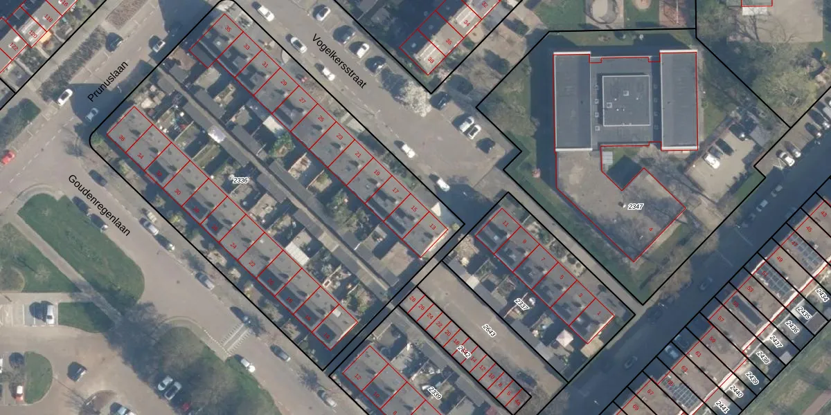 Vogelkersstraat 15 is gelegen op kadastraal perceel RDK01D2336. Deze kadastrale aanduiding is uniek en wordt gebruikt door het Kadaster om eigendomsrechten en andere zakelijke rechten vast te leggen. Het perceel maakt onderdeel uit van de kadastrale gemeente Ridderkerk.