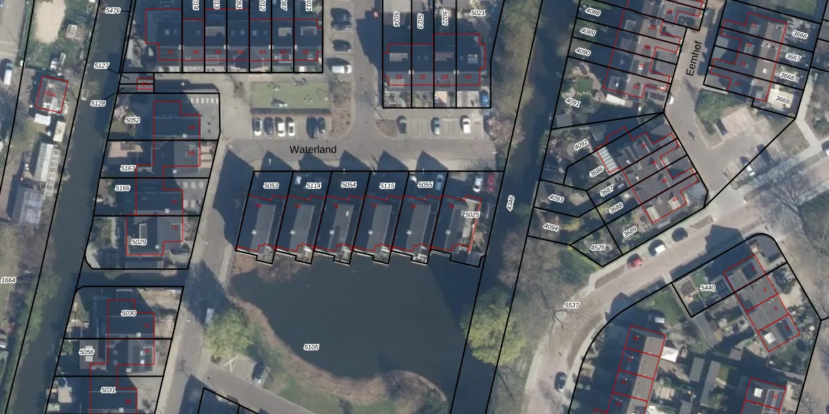 Het perceel waarop Waterland 56 staat heeft een oppervlakte van 194 m². Dit is een middelgroot perceel. De perceeloppervlakte wordt geregistreerd door het Kadaster. Gedetailleerde informatie over de maten van dit perceel kunt u vinden in het rapport Kadastrale kaart met maatvoering van Waterland 56.