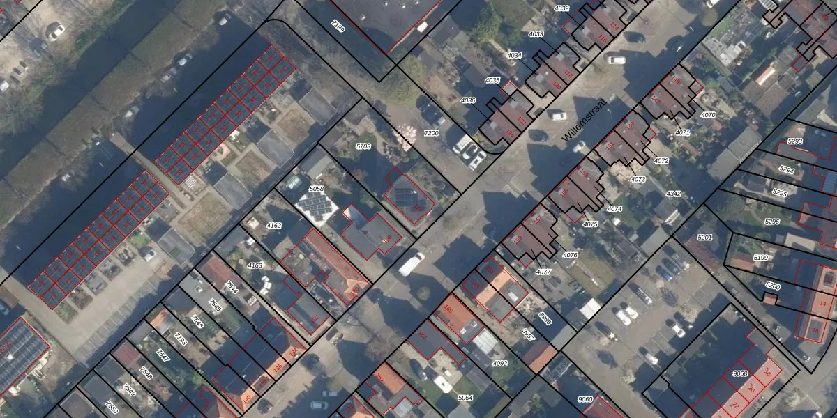 Het perceel waarop Willemstraat 126 staat heeft een oppervlakte van 495 m². Dit is een groot perceel. De perceeloppervlakte wordt geregistreerd door het Kadaster. Gedetailleerde informatie over de maten van dit perceel kunt u vinden in het rapport Kadastrale kaart met maatvoering van Willemstraat 126.
