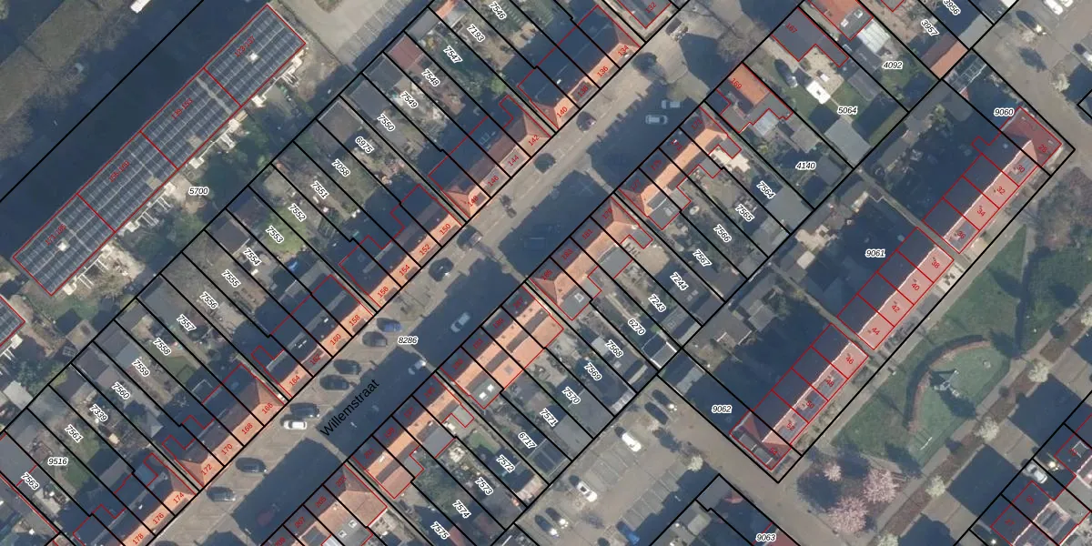 Het perceel waarop Willemstraat 185 staat heeft een oppervlakte van 175 m². Dit is een middelgroot perceel. De perceeloppervlakte wordt geregistreerd door het Kadaster. Gedetailleerde informatie over de maten van dit perceel kunt u vinden in het rapport Kadastrale kaart met maatvoering van Willemstraat 185.