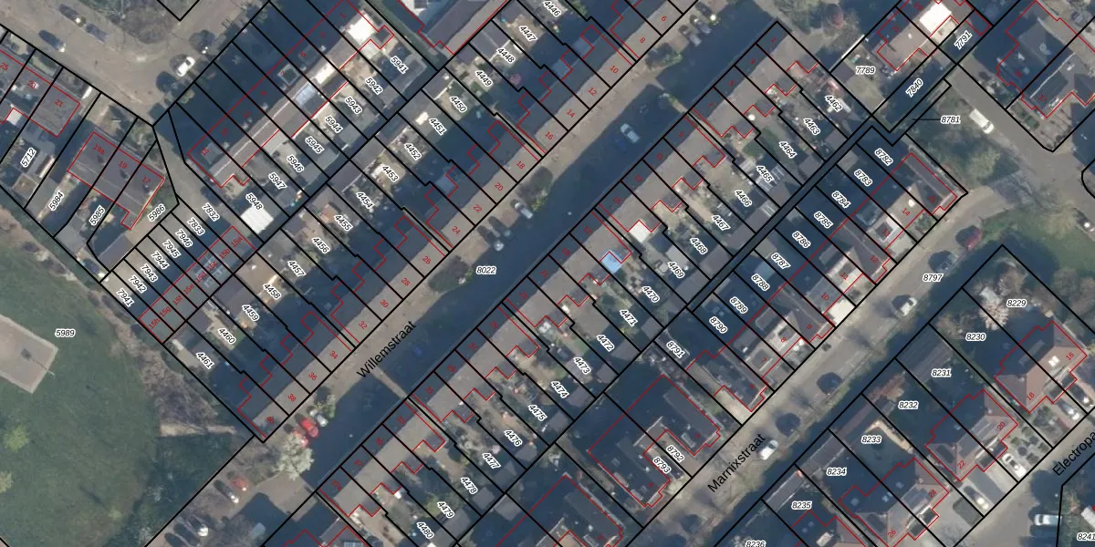 Het perceel waarop Willemstraat 21 staat heeft een oppervlakte van 144 m². Dit is een middelgroot perceel. De perceeloppervlakte wordt geregistreerd door het Kadaster. Gedetailleerde informatie over de maten van dit perceel kunt u vinden in het rapport Kadastrale kaart met maatvoering van Willemstraat 21.