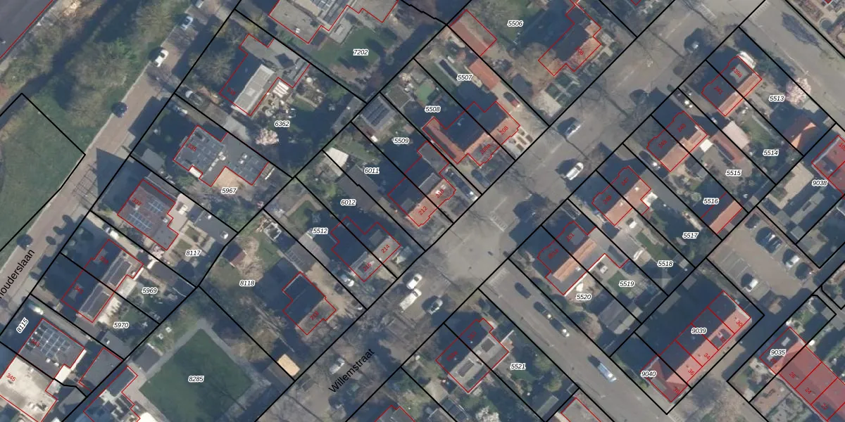 Het perceel waarop Willemstraat 212 staat heeft een oppervlakte van 322 m². Dit is een groot perceel. De perceeloppervlakte wordt geregistreerd door het Kadaster. Gedetailleerde informatie over de maten van dit perceel kunt u vinden in het rapport Kadastrale kaart met maatvoering van Willemstraat 212.