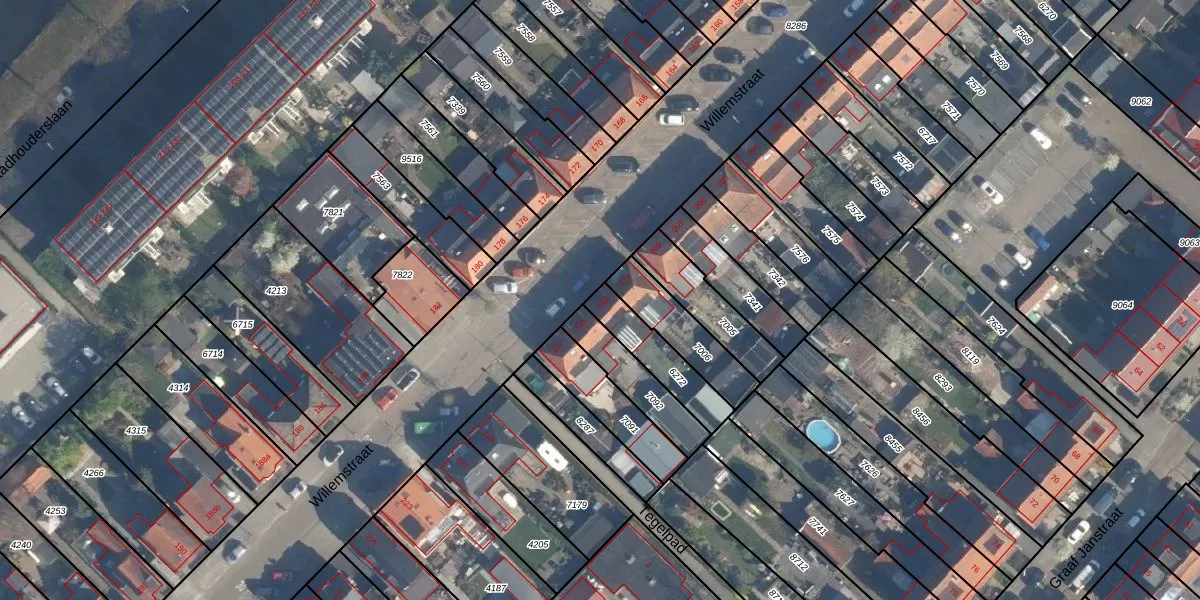 Het perceel waarop Willemstraat 213 staat heeft een oppervlakte van 166 m². Dit is een middelgroot perceel. De perceeloppervlakte wordt geregistreerd door het Kadaster. Gedetailleerde informatie over de maten van dit perceel kunt u vinden in het rapport Kadastrale kaart met maatvoering van Willemstraat 213.
