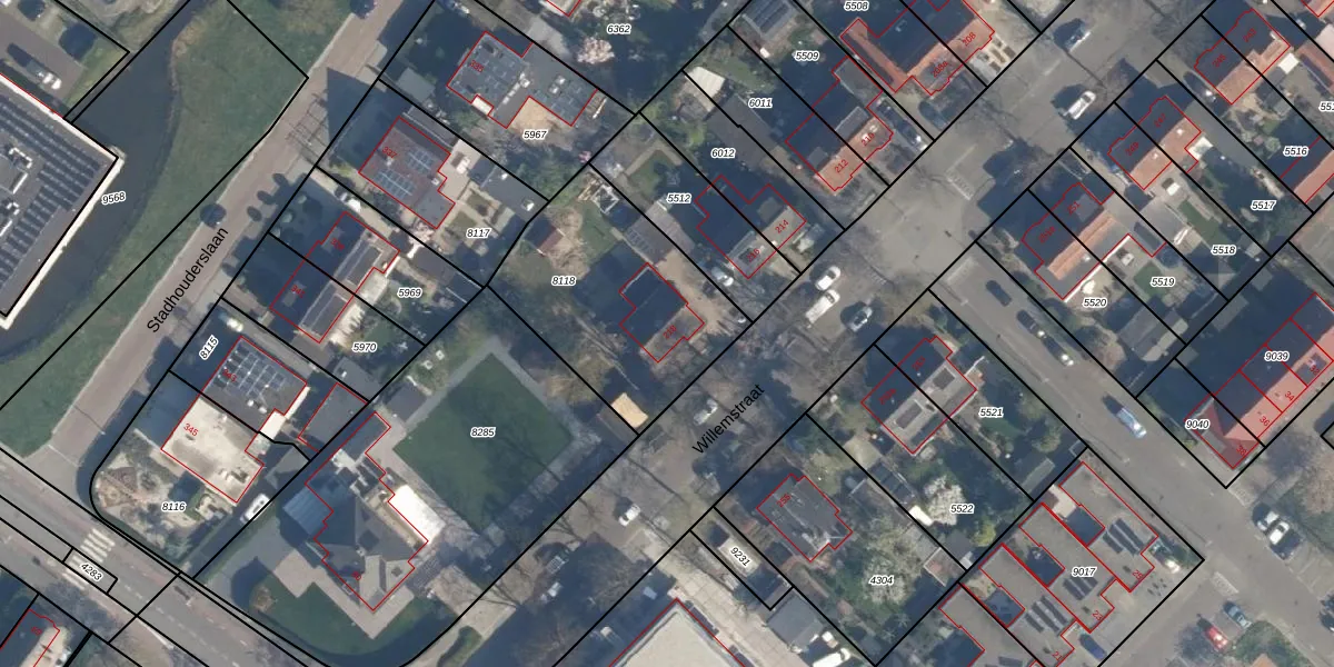 Het perceel waarop Willemstraat 218 staat heeft een oppervlakte van 814 m². Dit is een groot perceel. De perceeloppervlakte wordt geregistreerd door het Kadaster. Gedetailleerde informatie over de maten van dit perceel kunt u vinden in het rapport Kadastrale kaart met maatvoering van Willemstraat 218.