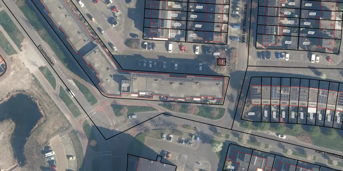 Het perceel waarop het adres ligt is RDK01-B-1559. De afkorting 'RDK01' staat voor kadastrale gemeente Ridderkerk. De oppervlakte van het perceel is 2560 m². Dat is groter dan gemiddeld in Ridderkerk, waar de gemiddelde perceeloppervlakte op 1571,46 m² ligt. Het grootste perceel in de kadastrale gemeente is 61,6 ha. Het kleinste perceel heeft een oppervlakte van 0 m². Op het perceel zijn 60 adressen aanwezig. In de Basisregistratie Kadaster (BRK) werden de grenzen van het perceel geregistreerd op 04-12-2001.