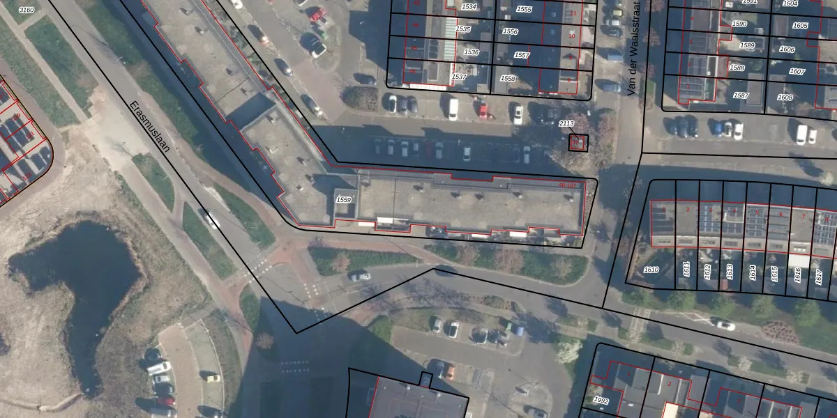 Het adres is gelegen op perceel 1559 in de sectie B en de kadastrale gemeente Ridderkerk. De kadastrale aanduiding is aldus RDK01-B-1559. Het perceel is met 2560 m² relatief groot. Het gemiddelde ligt in de kadastrale gemeente Ridderkerk op 1571,46 m². Het grootste perceel in de kadastrale gemeente is 61,6 ha. Het kleinste perceel heeft een oppervlakte van 0 m². Er zijn 60 adressen aanwezig op het perceel. In de Basisregistratie Kadaster (BRK) werden de grenzen van het perceel geregistreerd op 04-12-2001.