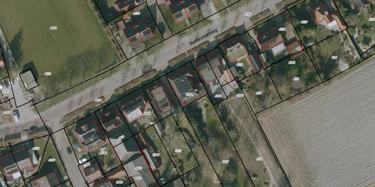 Het adres is gelegen op perceel 4269 in de sectie A en de kadastrale gemeente Ried. De kadastrale aanduiding is aldus RIE00-A-4269. De gemiddelde perceelgrootte in Ried is 1,2 ha. Dit perceel is kleiner: de perceeloppervlakte bedraagt 308 m². De grootste perceeloppervlakte in de kadastrale gemeente is 32,1 ha. De kleinste oppervlakte bedraagt 3 m². Op het perceel liggen in totaal 2 adressen. De laatste wijziging in het de Basisregistratie Kadaster (BRK) was op 12-12-2000.