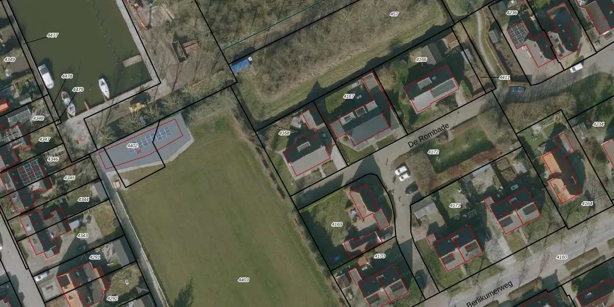 De Rombade 5 is gelegen op kadastraal perceel RIE00A4168. Deze kadastrale aanduiding is uniek en wordt gebruikt door het Kadaster om eigendomsrechten en andere zakelijke rechten vast te leggen. Het perceel maakt onderdeel uit van de kadastrale gemeente Ried.