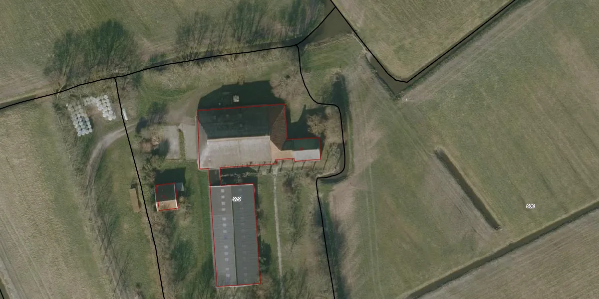 Het perceel waarop het adres ligt is RIE00-XY-979. De afkorting 'RIE00' staat voor kadastrale gemeente Ried. Het perceel is kleiner dan gemiddeld in Ried. Het perceel is 6110 m² groot, terwijl het gemiddelde ligt op 1,2 ha. Het kleinste perceel in de kadastrale gemeente is 3 m² groot. De grootste perceeloppervlakte is 32,1 ha. Op het perceel liggen in totaal 2 adressen. In de Basisregistratie Kadaster (BRK) werden de grenzen van het perceel geregistreerd op 30-09-2023.