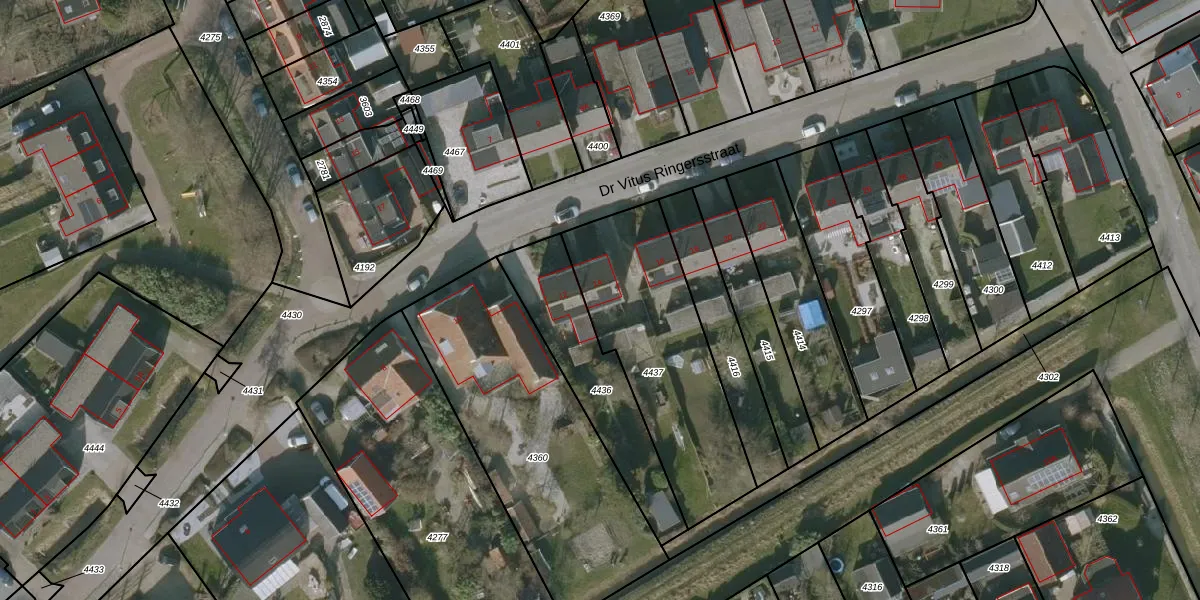 Dr Vitus Ringersstraat 14 is gelegen op kadastraal perceel RIE00A4437. Deze kadastrale aanduiding is uniek en wordt gebruikt door het Kadaster om eigendomsrechten en andere zakelijke rechten vast te leggen. Het perceel maakt onderdeel uit van de kadastrale gemeente Ried.