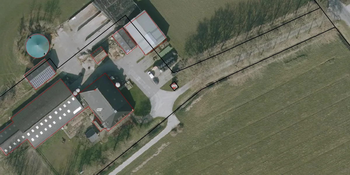 Het adres ligt op het perceel RIE00-XY-556, dat zich in de kadastrale gemeente Ried bevindt. Het perceel is 13 m² groot. Dat is kleiner dan de gemiddelde perceeloppervlakte in Ried, dat op 1,2 ha ligt. Het grootste perceel in de kadastrale gemeente is 32,1 ha. Het kleinste perceel heeft een oppervlakte van 3 m². Dit is het enige adres dat aanwezig is op het perceel. In de Basisregistratie Kadaster (BRK) werden de grenzen van het perceel geregistreerd op 30-09-2023.