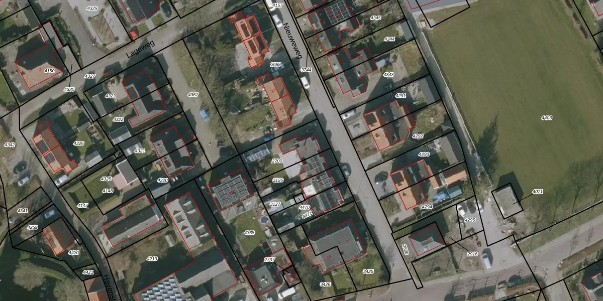 Gebruik de zoekbalk of klik op een perceel voor informatie over de adressen binnen dit perceel.