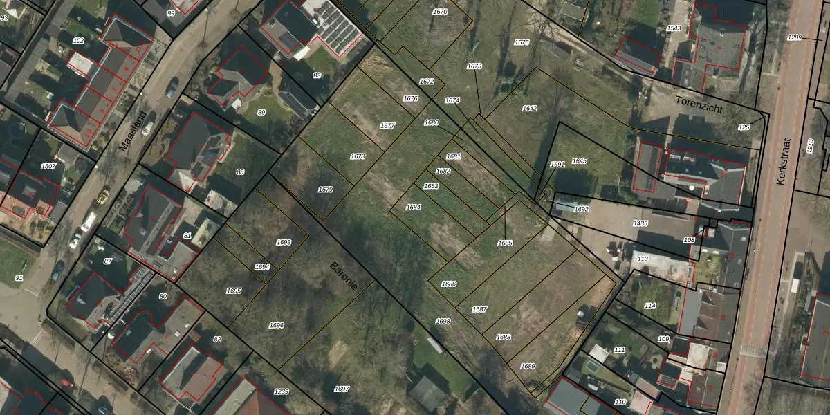 Het perceel waarop Baronie 10 staat heeft een oppervlakte van 173 m². Dit is een middelgroot perceel. De perceeloppervlakte wordt geregistreerd door het Kadaster. Gedetailleerde informatie over de maten van dit perceel kunt u vinden in het rapport Kadastrale kaart met maatvoering van Baronie 10.