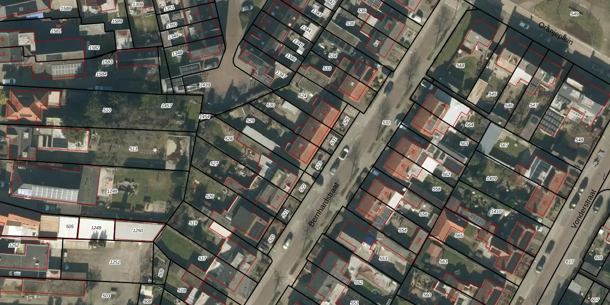 Gebruik de zoekbalk of klik op een perceel voor informatie over de adressen binnen dit perceel.