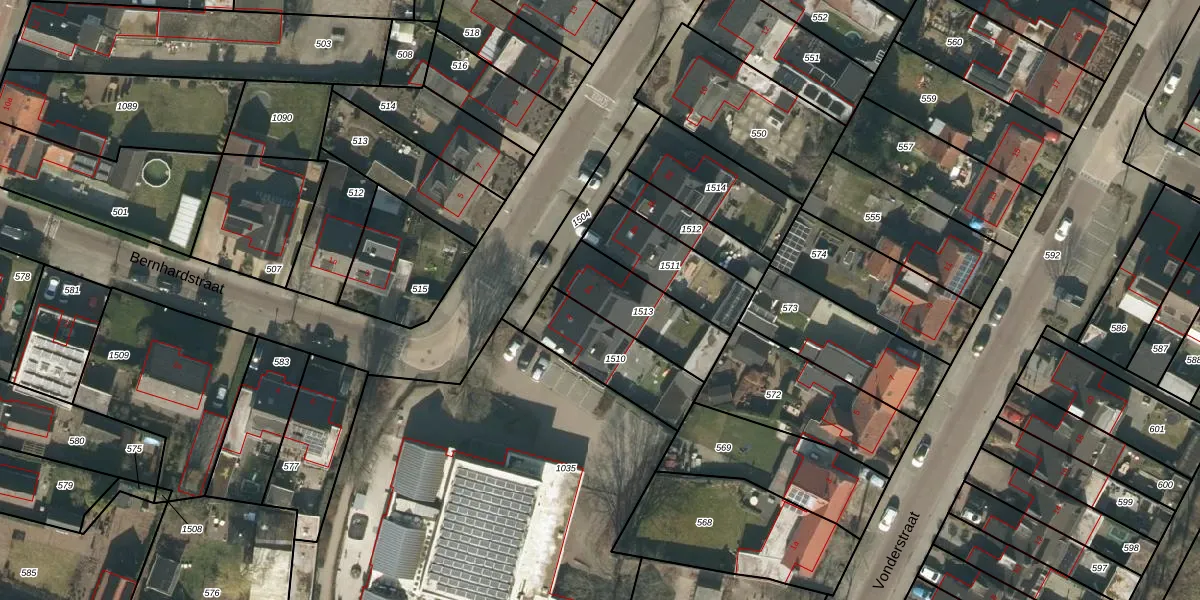 Bernhardstraat 8-a is gelegen op kadastraal perceel GLE01F1513. Deze kadastrale aanduiding is uniek en wordt gebruikt door het Kadaster om eigendomsrechten en andere zakelijke rechten vast te leggen. Het perceel maakt onderdeel uit van de kadastrale gemeente Goirle.