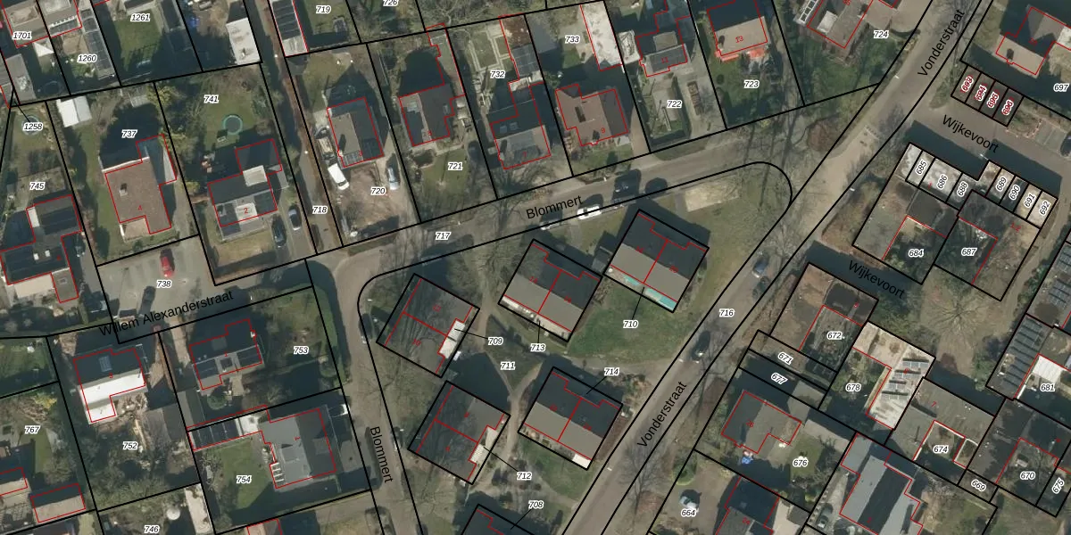 Het perceel waarop Blommert 14 staat heeft een oppervlakte van 203 m². Dit is een middelgroot perceel. De perceeloppervlakte wordt geregistreerd door het Kadaster. Gedetailleerde informatie over de maten van dit perceel kunt u vinden in het rapport Kadastrale kaart met maatvoering van Blommert 14.