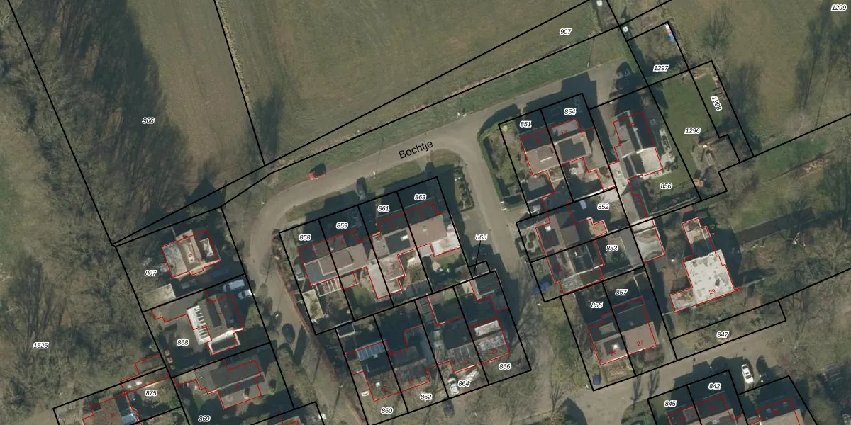 Gebruik de zoekbalk of klik op een perceel voor informatie over de adressen binnen dit perceel.