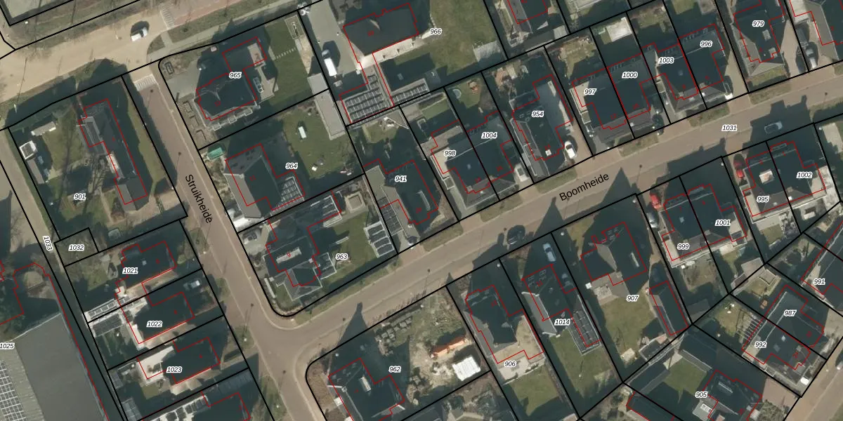 Het perceel waarop Boomheide 20 staat heeft een oppervlakte van 478 m². Dit is een groot perceel. De perceeloppervlakte wordt geregistreerd door het Kadaster. Gedetailleerde informatie over de maten van dit perceel kunt u vinden in het rapport Kadastrale kaart met maatvoering van Boomheide 20.