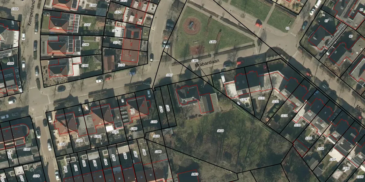 Het perceel waarop Brabantlaan 9 staat heeft een oppervlakte van 2227 m². Dit is een zeer groot perceel. De perceeloppervlakte wordt geregistreerd door het Kadaster. Gedetailleerde informatie over de maten van dit perceel kunt u vinden in het rapport Kadastrale kaart met maatvoering van Brabantlaan 9.