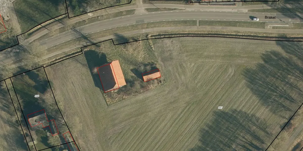 Brakel 1 is gelegen op kadastraal perceel GLE01K557. Deze kadastrale aanduiding is uniek en wordt gebruikt door het Kadaster om eigendomsrechten en andere zakelijke rechten vast te leggen. Het perceel maakt onderdeel uit van de kadastrale gemeente Goirle.
