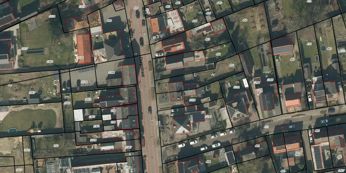 Het perceel waarop Dorpstraat 38 staat heeft een oppervlakte van 470 m². Dit is een groot perceel. De perceeloppervlakte wordt geregistreerd door het Kadaster. Gedetailleerde informatie over de maten van dit perceel kunt u vinden in het rapport Kadastrale kaart met maatvoering van Dorpstraat 38.