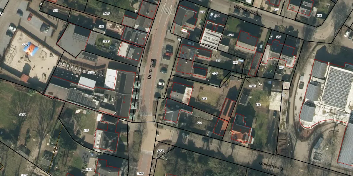 Dorpstraat 4 is gelegen op kadastraal perceel GLE01F585. Deze kadastrale aanduiding is uniek en wordt gebruikt door het Kadaster om eigendomsrechten en andere zakelijke rechten vast te leggen. Het perceel maakt onderdeel uit van de kadastrale gemeente Goirle.