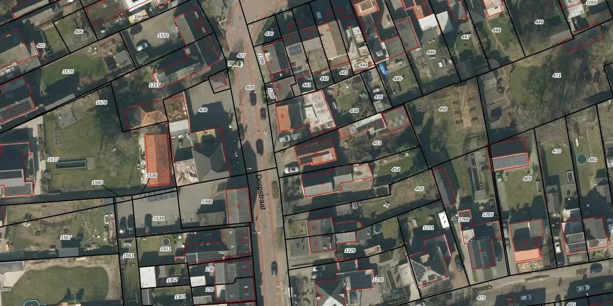 Het perceel waarop Dorpstraat 40-a staat heeft een oppervlakte van 560 m². Dit is een groot perceel. De perceeloppervlakte wordt geregistreerd door het Kadaster. Gedetailleerde informatie over de maten van dit perceel kunt u vinden in het rapport Kadastrale kaart met maatvoering van Dorpstraat 40-a.